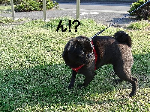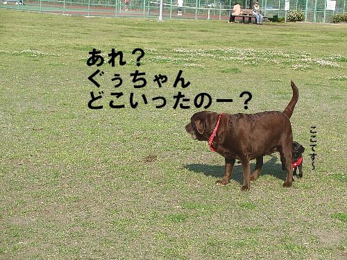 広~い芝生の原っぱで、ぐぅがなにやら見つけたようです…