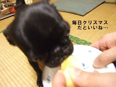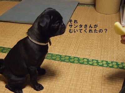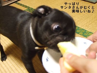そうだね、サンタさんむくの上手だね~(←今回本当に支配人がリンゴむいてくれました(笑))
