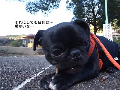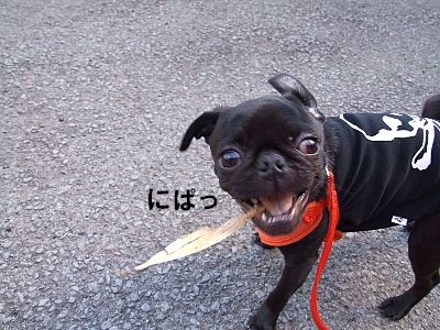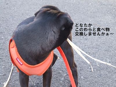 この日の散歩中、ずっとわらをくわえてましたが…