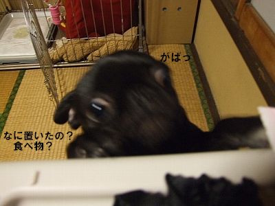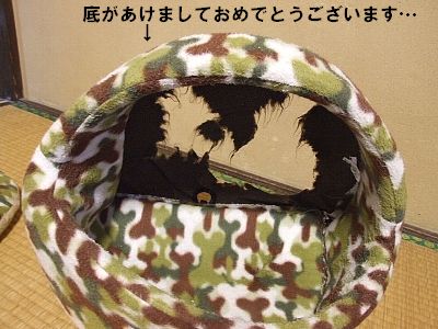 こんなにビリビリにして、もぅお家ナシ!!床に寝なさい!!